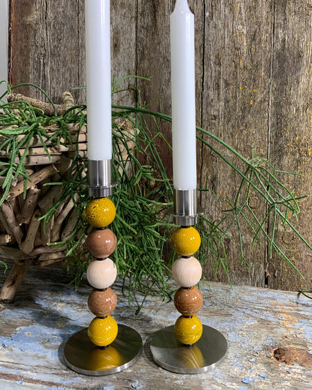 Her ser du forskellige lysestager til kronelys og fyrfadslys. Ens for dem alle er de er helt unikke. Nogle med drivtømmer og glas, andre i børstet rustfri stål fra MY-CANDLE med keramik kugler. Stagerne kan skilles af så man kan skifte farver eller evt. have dem stående i ren stål. De kan bruges med levende lys eller de populære led lys på batteri. De er smukke hele året rundt. Giv dem som gave, til dig selv eller en du holder af. På shoppen ser du et lille udvalg af færdige stage sæt. Ved bestilling kan du skrive hvis du ønsker andre farver på kugler. Endvidere kan du notere om du ønsker med kronelys eller fyrfads holdere. Kugle lysestager
