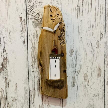 Rubjerg fyr i glas på drivtømmer