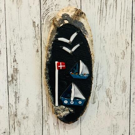 Fin lille træ stykke hvor der er monteret glas som jeg har lavet på eget værksted. Super dekorativ at have hængende. Den måler: 29x11 cm.
